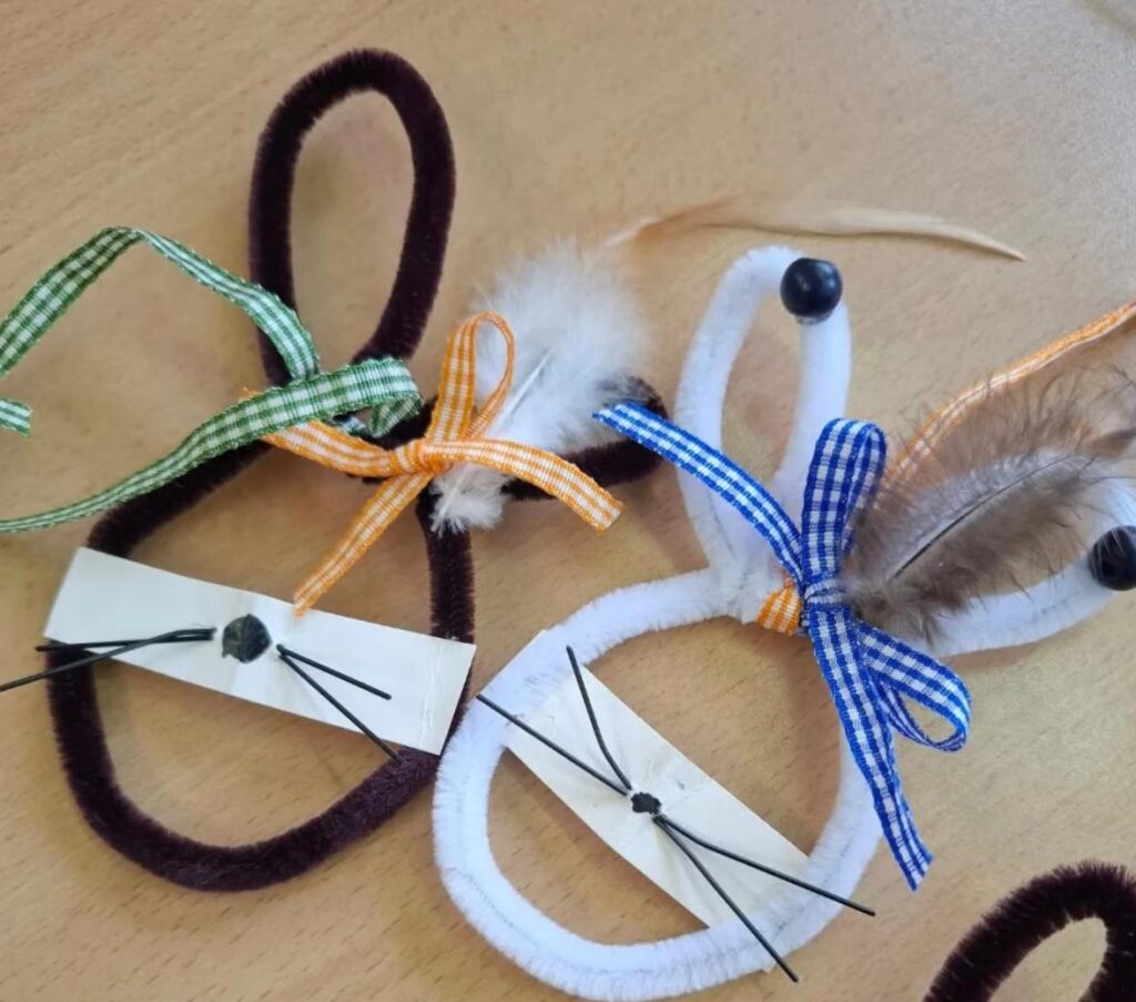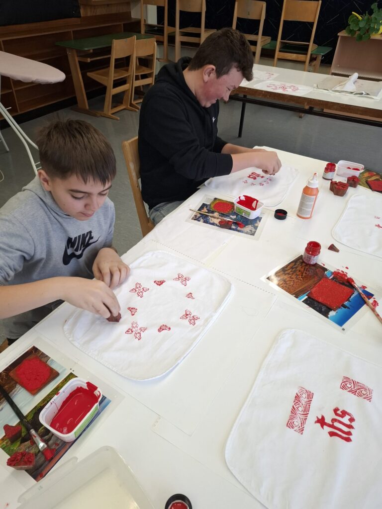 Auch die künstlerische Seite des Osterfestes wird lebendig – beim Drucken von Weihdeckerln sowie beim Gestalten von Ostereiern und Hasen für den Osterstrauch entstehen viele liebevolle Einzelstücke.